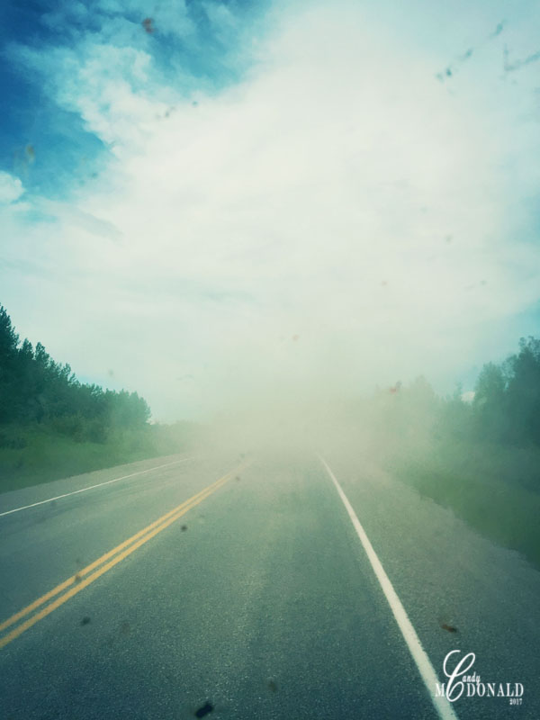 Dust through bug splattered windshield filtered